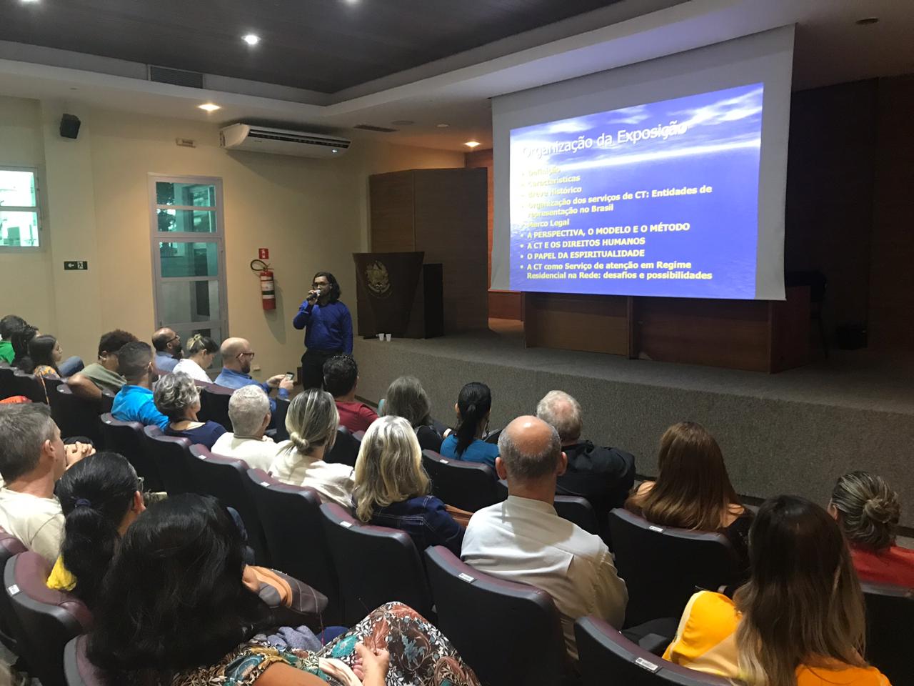 O primeiro palestrante do dia, o psicólogo clínico Glauber Alvarenga Rezende, que também é especialista em Dependência Química pela Universidade Federal do Espírito Santo (Ufes), fez um resgate histórico abordando o surgimento e o desenvolvimento das comunidades terapêuticas e como elas chegaram ao Brasil.