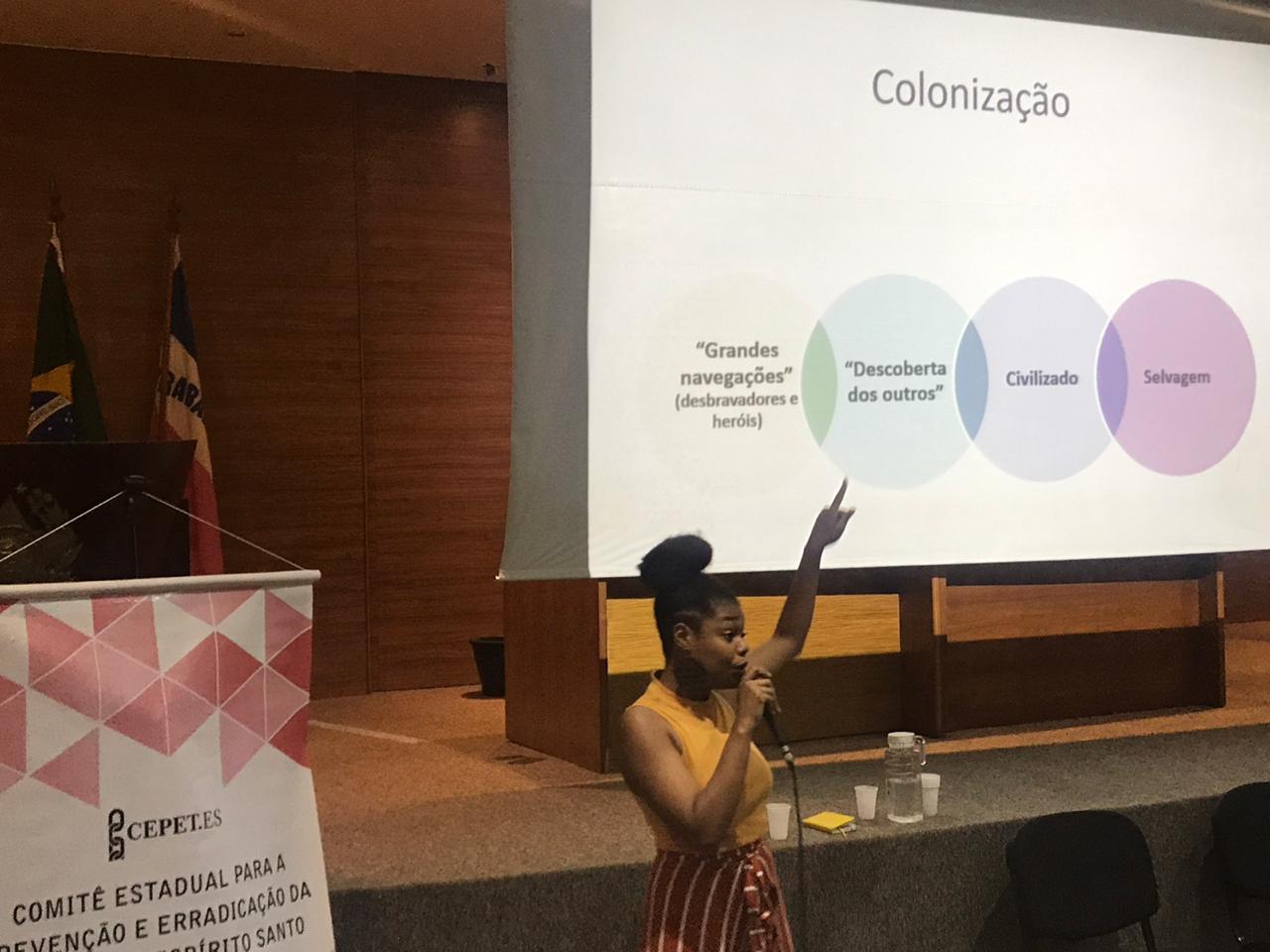 A última palestra ficou por conta da mestranda do Programa de pós-graduação em Psicologia Institucional pela Ufes, Nayara Oliveira Francisco, que abordou a “Questão étnico-racial e necropolítica na contemporaneidade”.