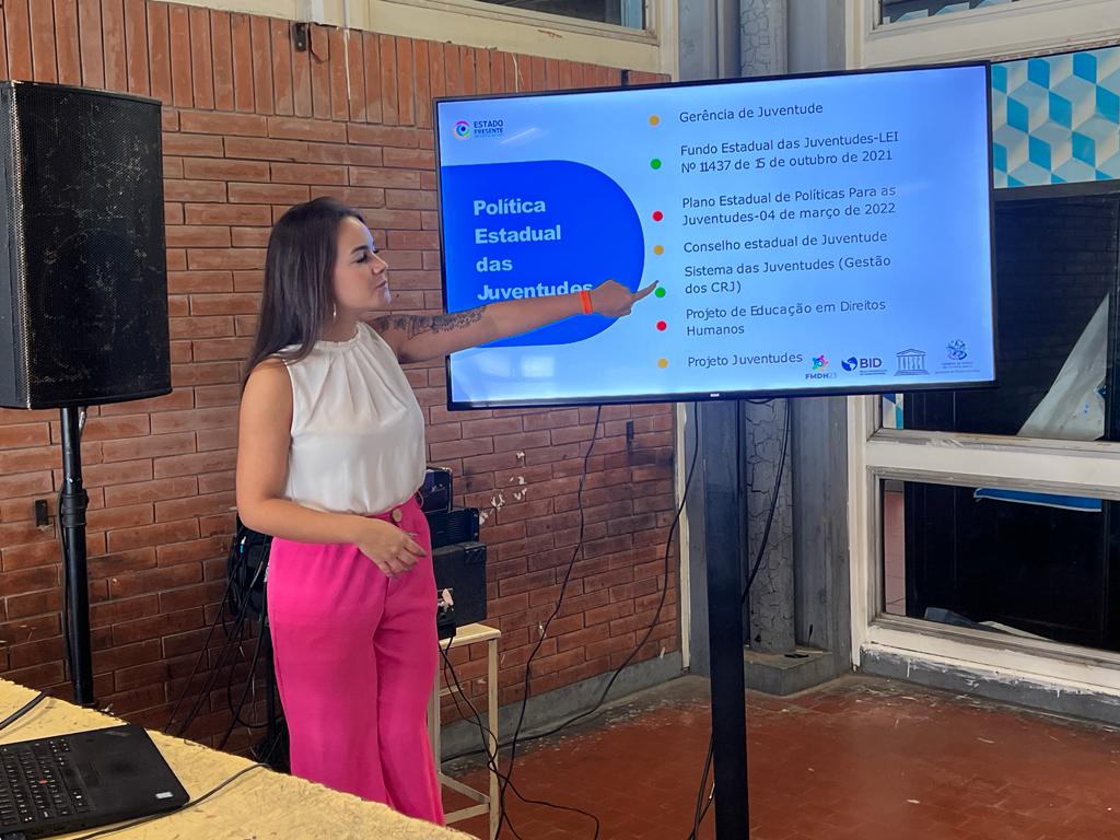 A secretária de Estado de Direitos Humanos, Nara Borgo, ministrou palestra na tarde desta terça-feira (21), sobre o tema. Ela explicou o funcionamento dos Centros, que oferecem diversos serviços públicos gratuitos para as juventudes de 15 a 24 anos e representam a principal ação do Eixo de Proteção Social do Estado Presente em Defesa da Vida.