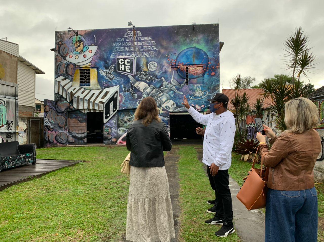 A secretária de Estado de Direitos Humanos, Nara Borgo, e a assessora da Gerência de Proteção e Defesa dos Direitos Humanos, Paula Colella, realizaram, nessa quinta-feira (28), uma visita técnica a Casa da Cultura Hip Hop no município de Esteio, no Rio Grande do Sul, a maior da América Latina. O objetivo foi a troca de informações e experiência com a equipe no intuito de contribuir com o projeto dos Centros de Referência das Juventudes (CRJ) no Espírito Santo.