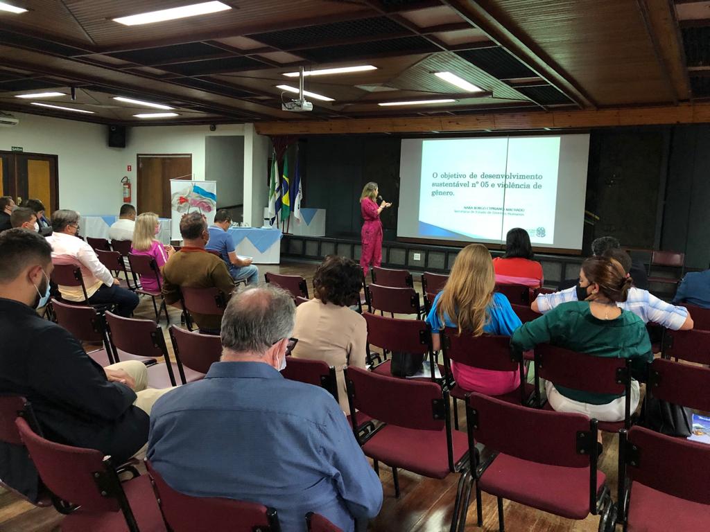 Na oportunidade, Nara Borgo deu ênfase à meta 5.2 da ODS nº 5, que tem o objetivo: “Eliminar todas as formas de violência contra as mulheres e meninas nas esferas públicas e privadas”.