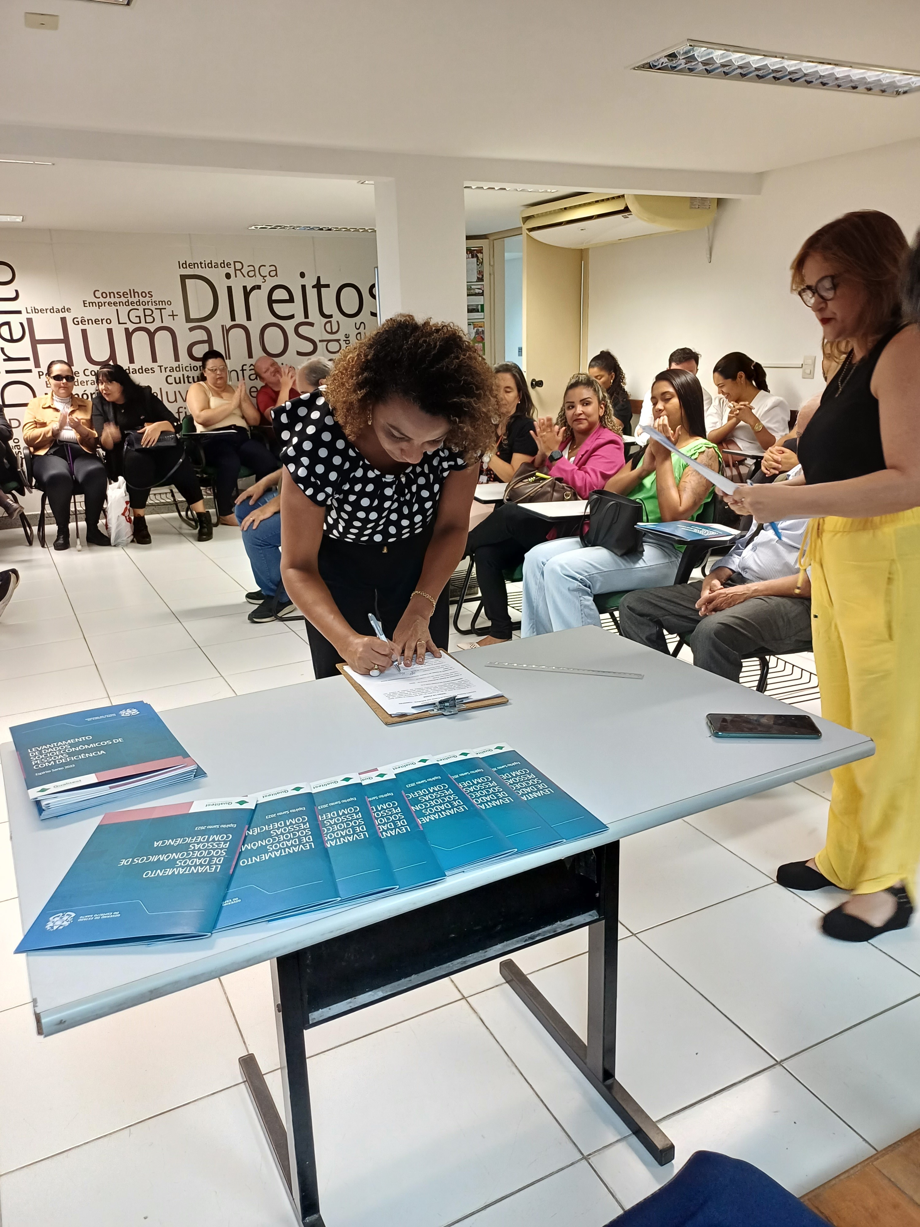 Além da posse dos novos integrantes do Conselho, a SEDH entregou o Levantamento de Dados SocioEconômicos de Pessoas com Deficiência elaborado pela Secretaria. O material proporciona uma visão abrangente e atualizada sobre as condições de vida, os desafios e as necessidades específicas desse grupo populacional.