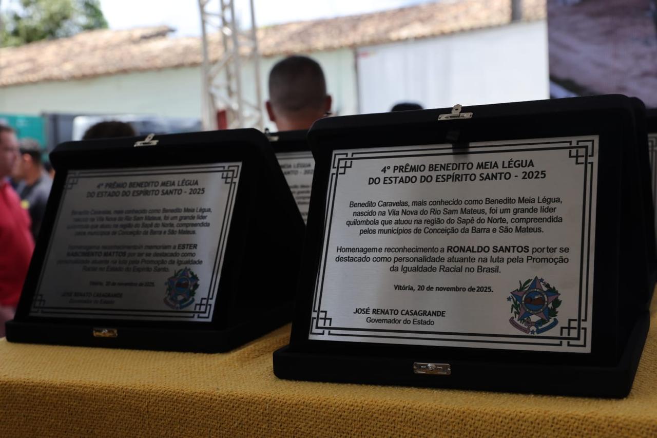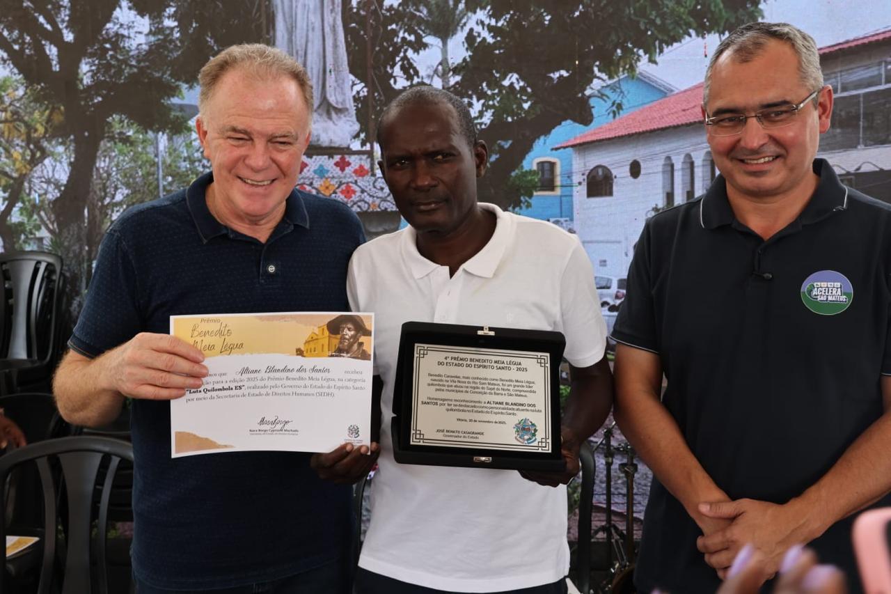 Com a presença do governador do Estado, Renato Casagrande, foi realizada, nesta quinta-feira (20), em São Mateus, a cerimônia de premiação da edição anual do Prêmio Benedito Meia Légua. Foram sete os homenageados pelo destaque na luta quilombola e na promoção da igualdade racial. O Prêmio é uma realização da Secretaria de Direitos Humanos (SEDH). A premiação integra as ações alusivas ao Dia Nacional da Consciência Negra, quando a sede do Governo do Estado é transferida para o município.