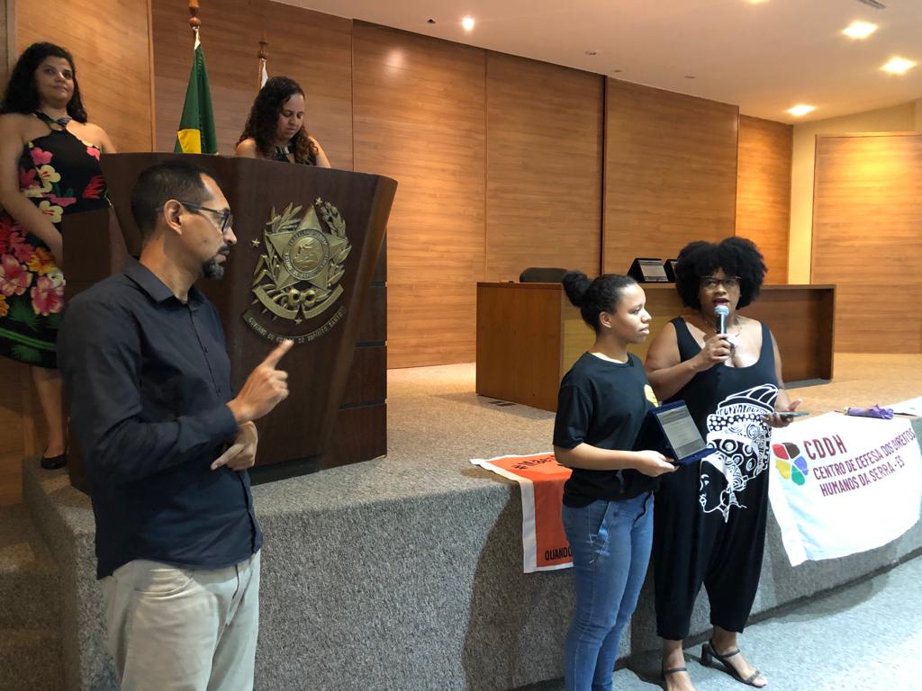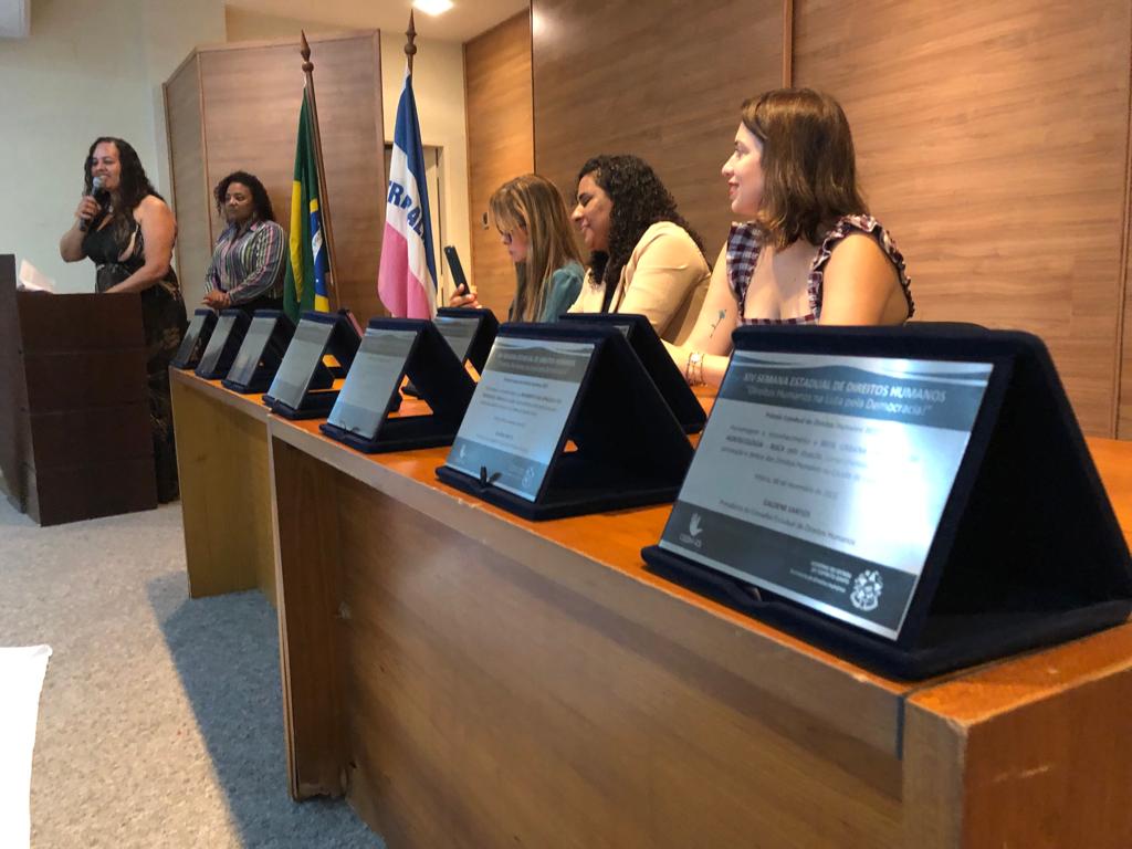 A solenidade contou ainda com falas da promotora Cláudia Garcia e da deputada estadual Iriny Lopes, que é conselheira do CEDH, além da intervenção cultural do jovem artista Jadson Titânio.
