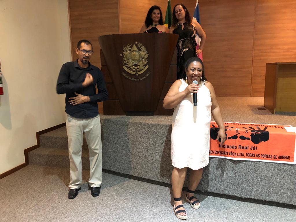 A vice-governadora do Estado, Jacqueline Moraes, e a secretária de Estado de Direitos Humanos, Nara Borgo, prestigiaram a solenidade e fizeram parte da composição da mesa de cerimônia, assim como a presidenta do CEDH, Galdene Santos, e a promotora de Justiça Cláudia Garcia, que representou a procuradora-geral de Justiça do Ministério Público Público do Espírito Santo, Luciana Andrade.