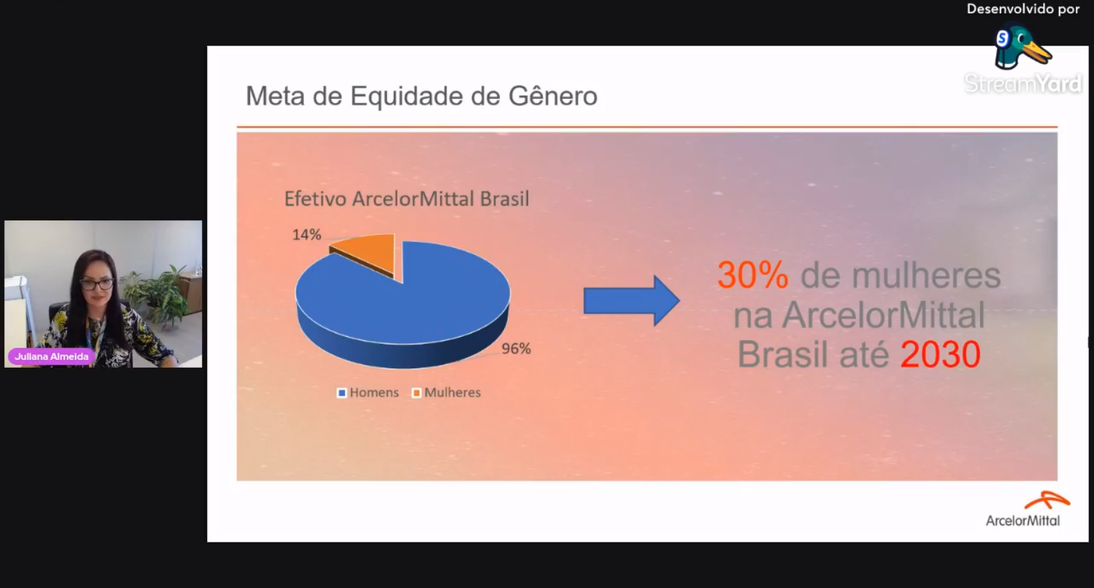 A gerente de Pessoas, Atração e Carreira da ArcelorMittal, Juliana Oliveira Almeida, destacou o trabalho da empresa no enfrentamento à violência contra as mulheres.