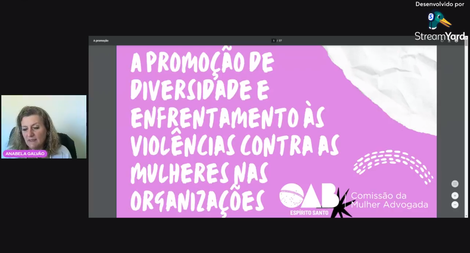 Quem também participou da atividade enquanto palestrante foi a presidenta da Comissão da Mulher Advogada da OAB-ES, Anabela Galvão.