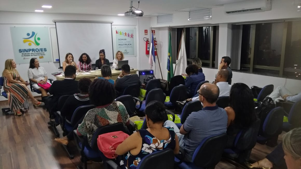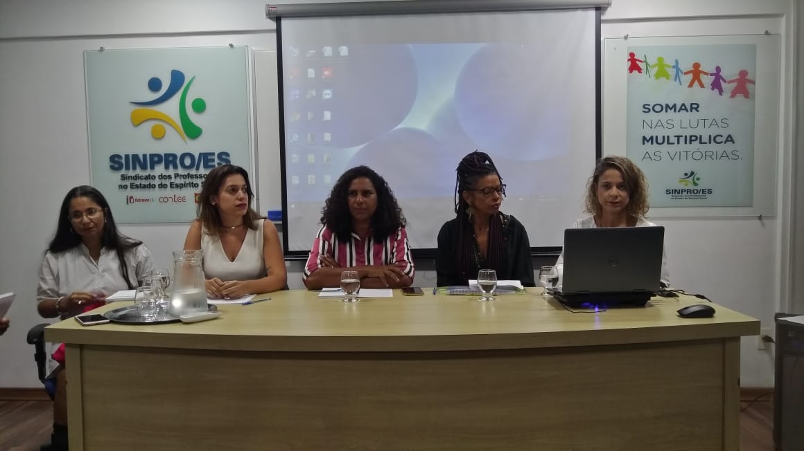 Mulher é sinônimo de resistência! E foi esse o tema abordado na mesa-redonda “Mulher: Realidade, Violência e Luta”, realizada pelo Sindicato dos professores no Estado do Espírito Santo (SINPRO/ES), em sua sede, no dia 22 de março, às 19h30, com a participação de Jacqueline Moraes, Vice Governadora do Estado do Espírito Santo, Larissy Soares, professora e coordenadora da ala de Passistas da Escola de Samba Novo Império, Nara Borgo, Secretária Estadual dos Direitos Humanos, Heloísa Carvalho, Coordenadora do Fórum Nacional de Mulheres Negras e Andrea Nascimento, psicóloga e professora da Universidade Federal do Espírito Santo (Ufes).