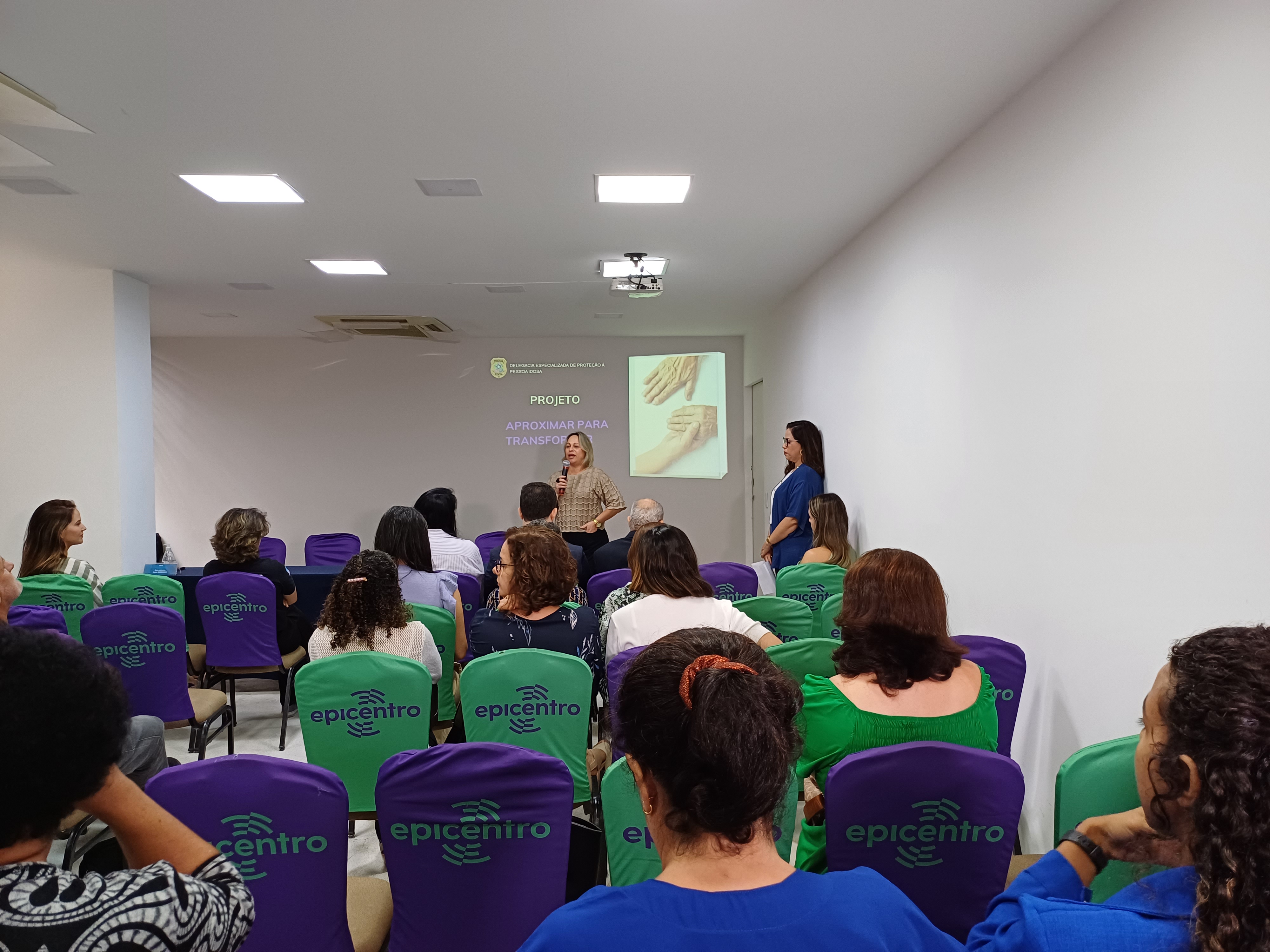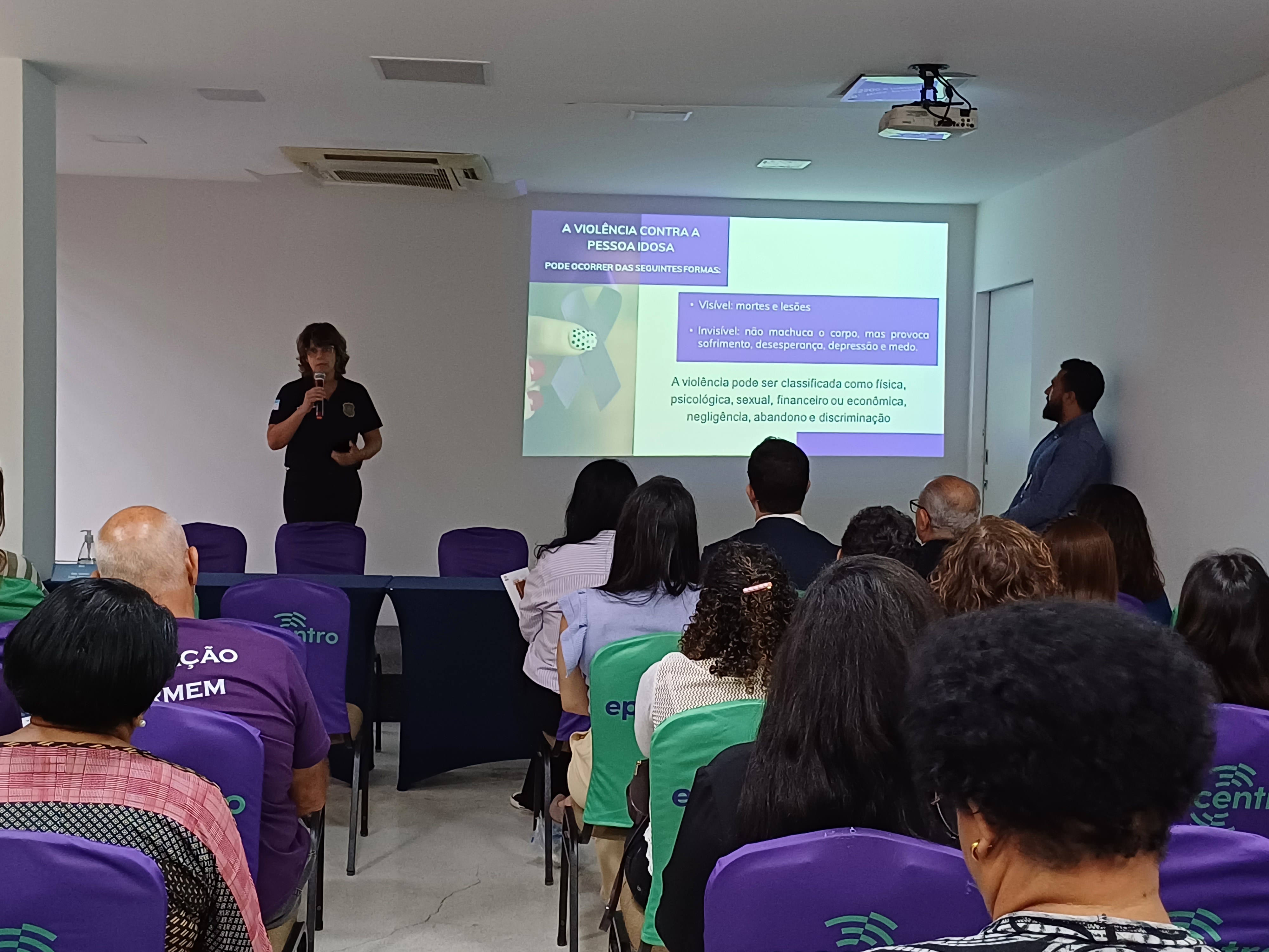 O foco do encontro foi o enfrentamento à violência contra a pessoa idosa por meio da palestra da equipe da Delegacia Especializada de Proteção à Pessoa Idosa representada pela investigadora de polícia Maraney Lopes Araújo e o assistente social Renilton Passos. Foi apresentado o trabalho desenvolvido pela delegacia, o quantitativo de denúncias, as principais vulnerabilidades e diferentes tipos de golpes de que este grupo da sociedade é vítima.