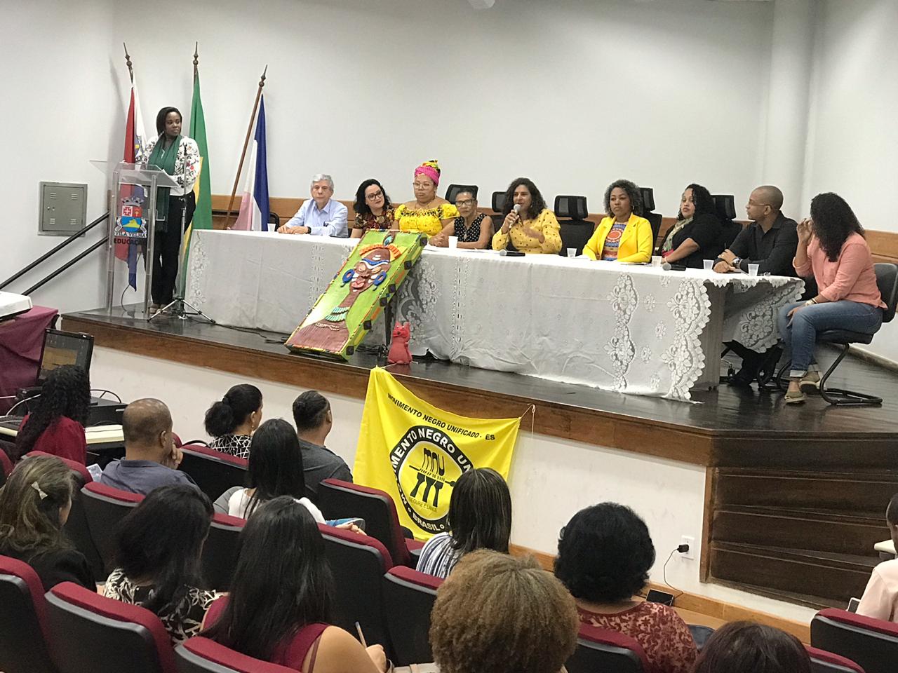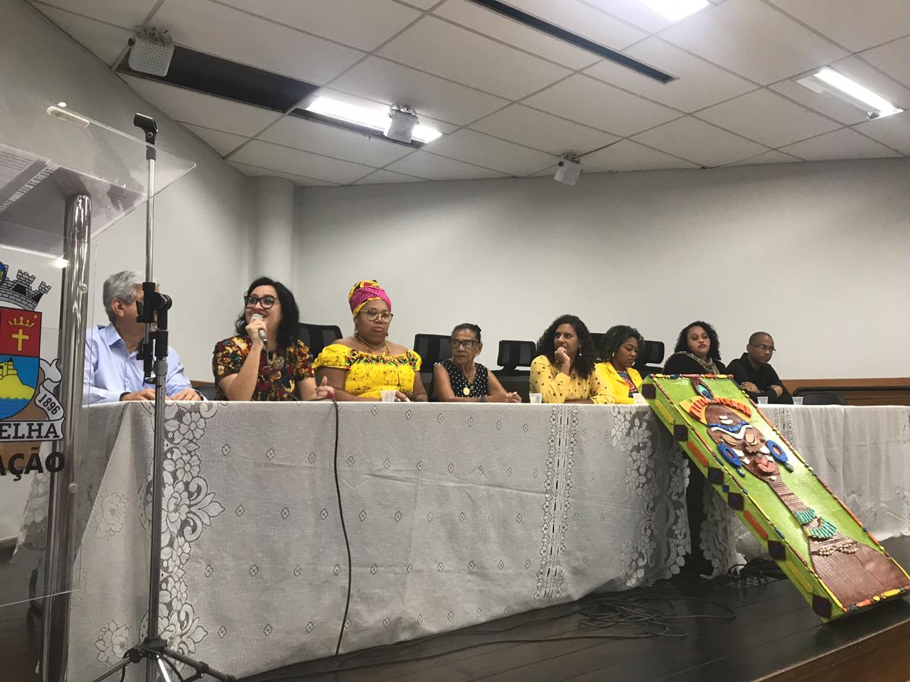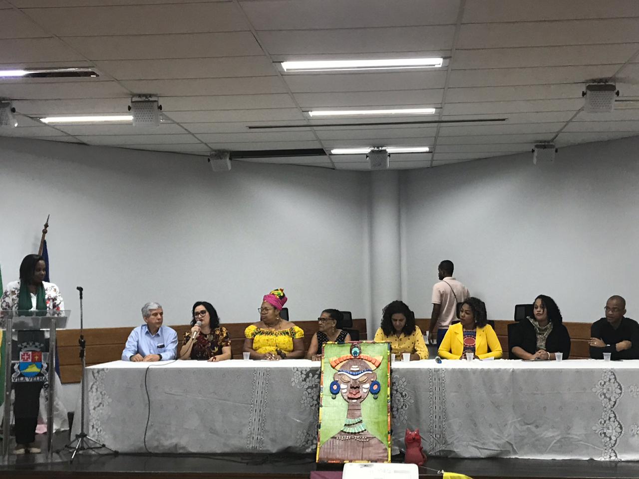 Também formaram a mesa o secretário municipal de Governo e Coordenação Institucional de Vila Velha, Saturnino Mauro, e a coordenadora de Estudos Africanos, Afro-Brasileiros e Indígenas (Ceafri) de Vila Velha, Alessandra Machado Fonseca.