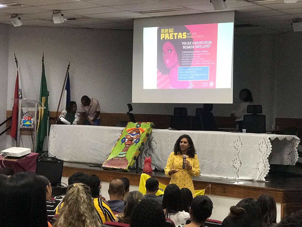 A Secretaria de Estado de Direitos Humanos (Sedh) realizou o debate “Por que a mulher negra incomoda tanta gente? ” em alusão ao Dia Internacional da Mulher Negra Latino Americana e Caribenha, comemorado nesta quinta-feira (25). O evento fez parte da programação “Julho das Pretas” e aconteceu no auditório do Titanic, no Centro de Vila Velha, em parceria com a prefeitura da cidade.